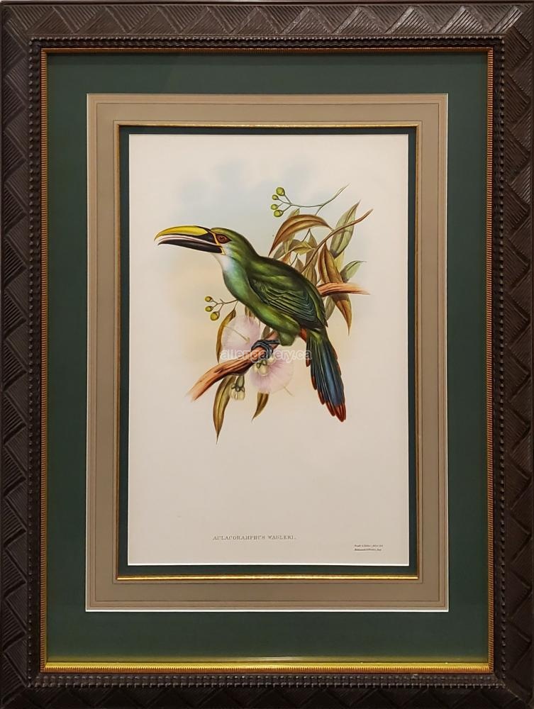 Aulacoramphus Wagleri c.1833 - triple matted hand-coloured engraving with embellished mat & gold fillet in elegant two-tone patterned frame - Set of 2