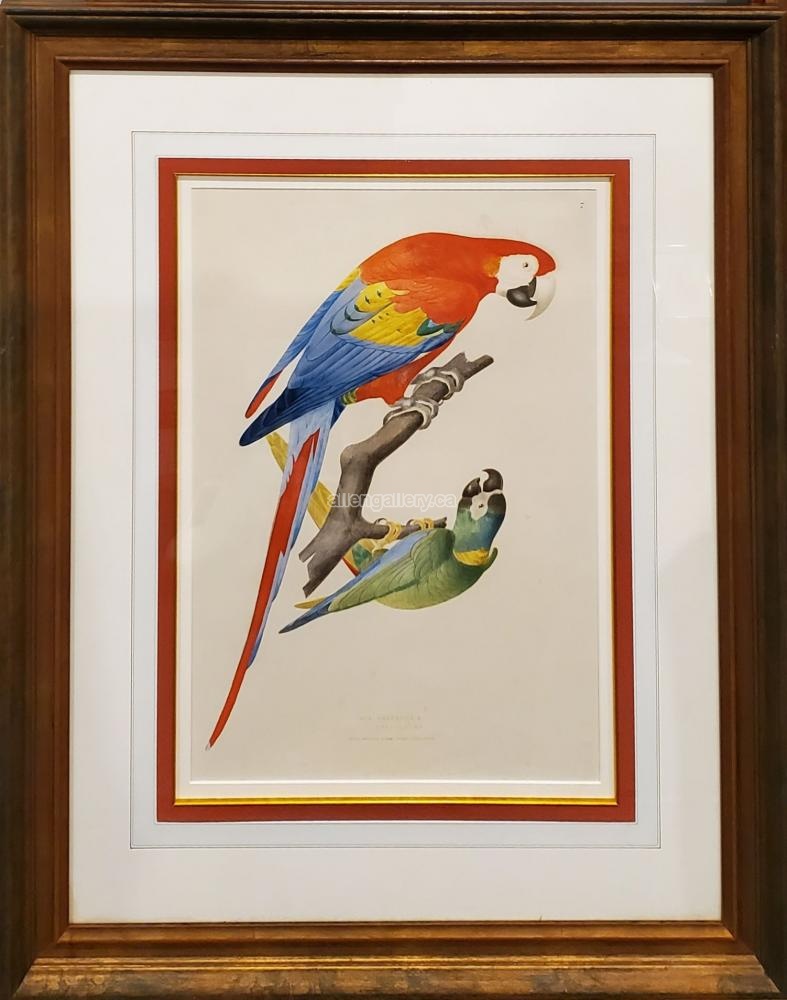 Birds of Brazil, Ara Aracanga Cryssosema c.1853 - triple matted hand-coloured engraving with hand-embellished mat & gold fillet in elegant frame - Set of 2