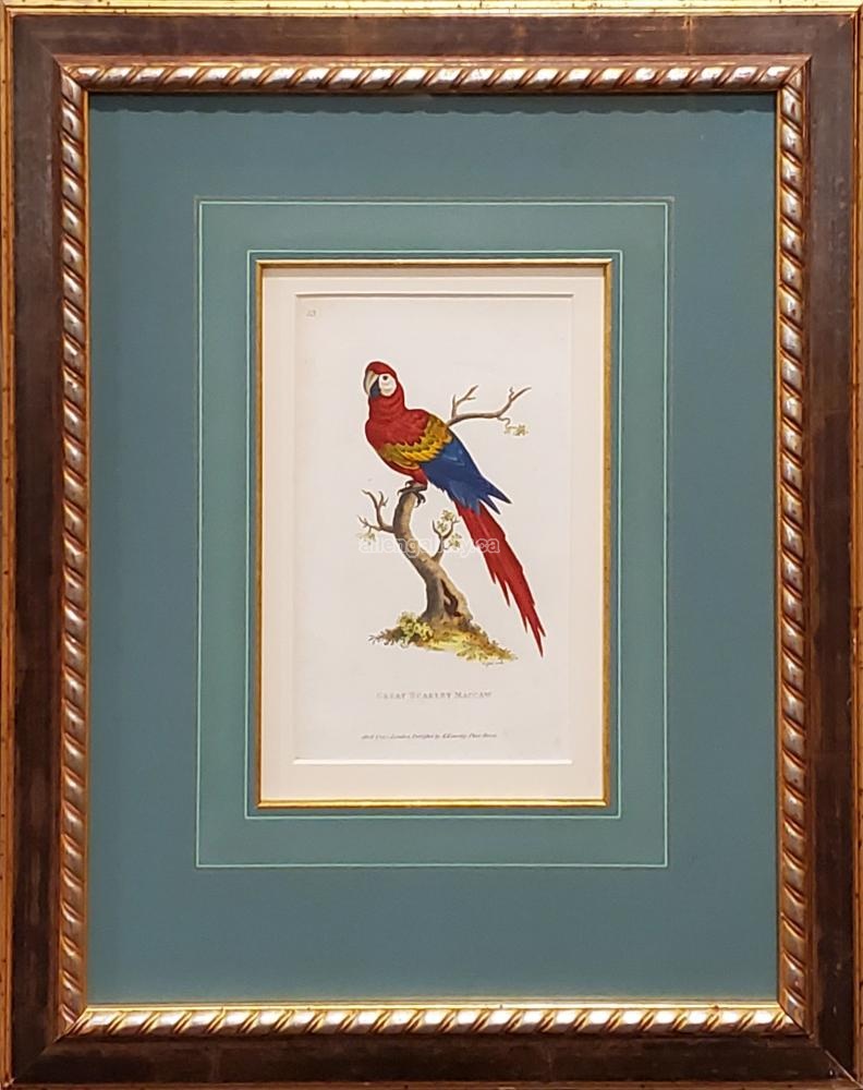 Great Scarlet Macaw c.1808 - double matted hand-coloured engraving with hand-embellished mat & gold fillet in elegant frame with corded lip - Set of 4