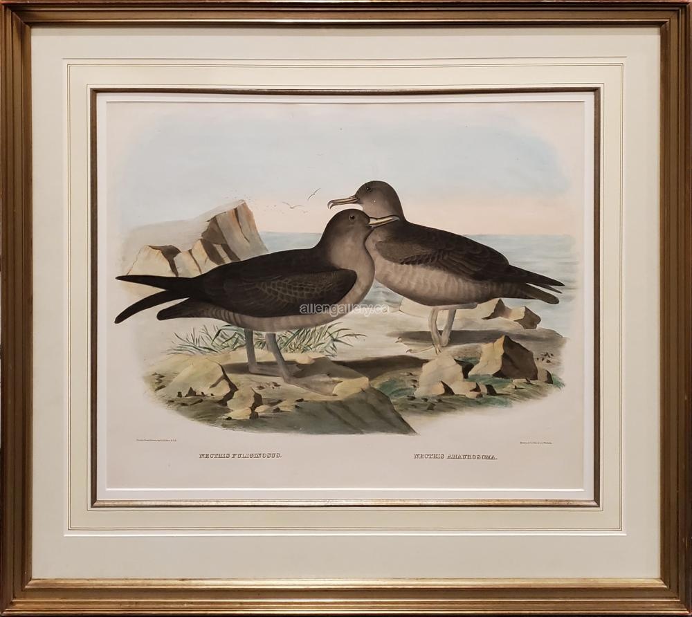 Birds of North America, Nectris Fugilinosus c.1867 - double matted hand-coloured engraving with hand-embellished mat & silver fillet in elegant frame - Set of 4
