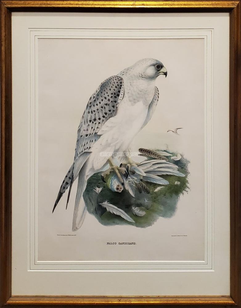 Birds Of North America, Falco Candicans c.1867 - double matted engraving with hand embellished inner mat in elegant frame