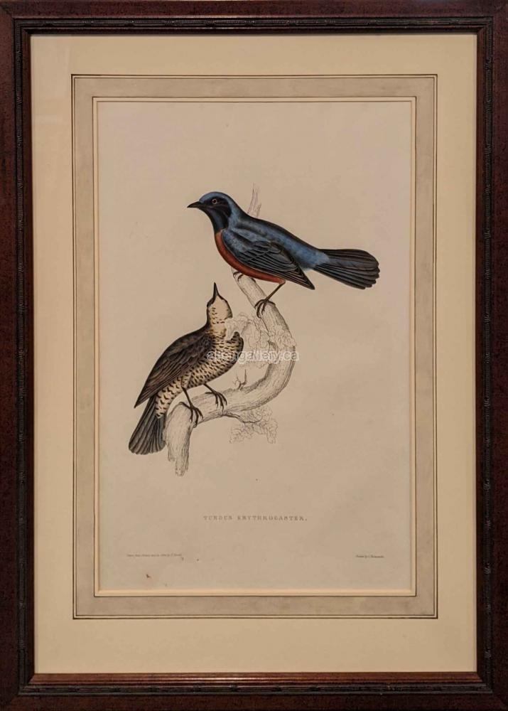 Birds of North America, Tardus Erythrogaster c.1831 - matted hand coloured engraving with hand embellished mat in elegant frame