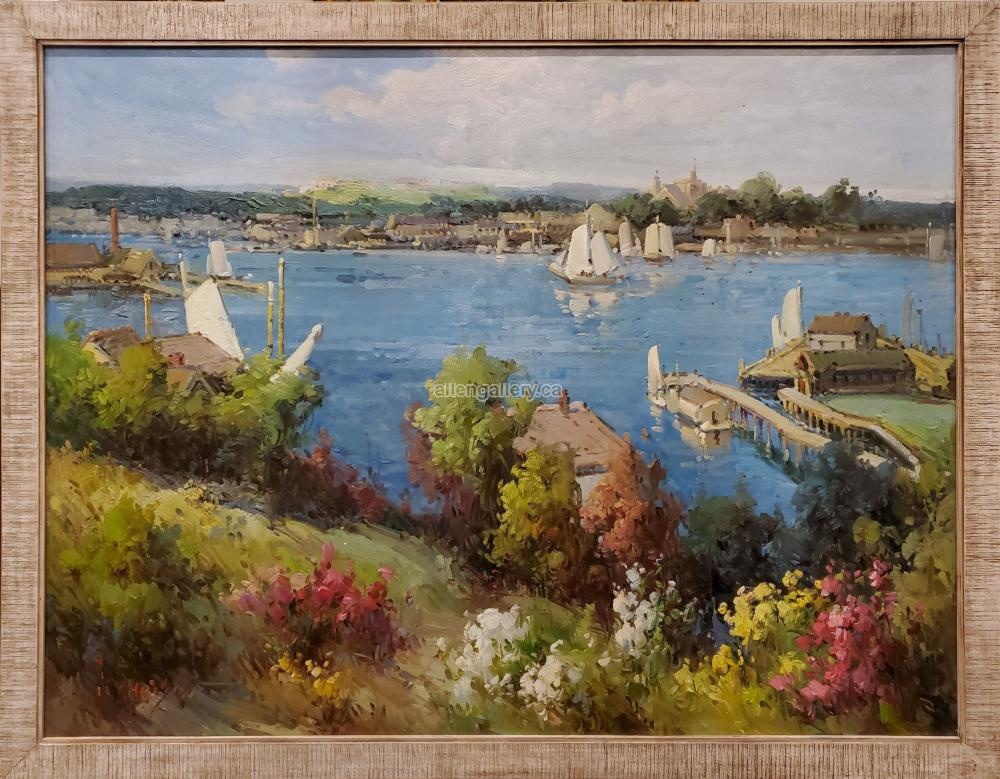 Bay With Sailboats - original oil in rustic frame available "frame only" on request (36x48 interior size)