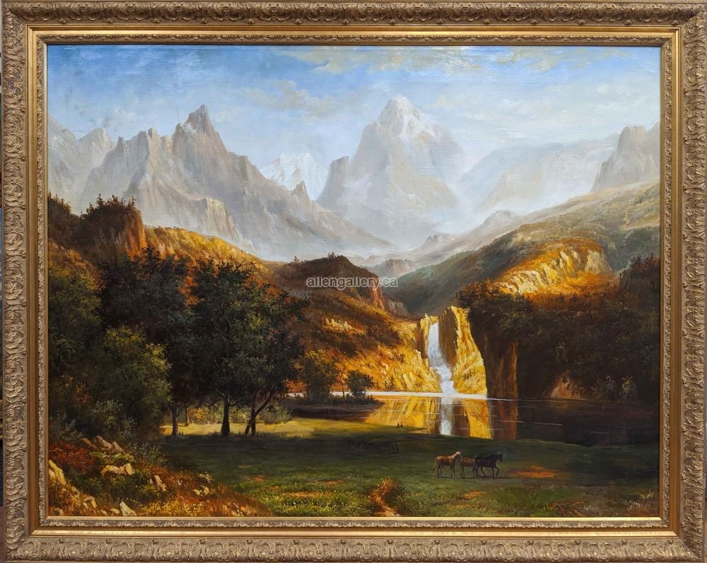 Waterfall With Mountains - original oil in ornate frame - Set of 4 - available "frame only" on request (36x48 interior size)