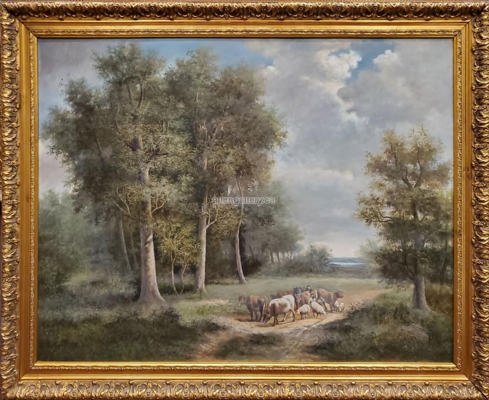 Cows In The Meadow - original oil in ornate frame - Set of 4 - available "frame only" on request (30x40 interior size)