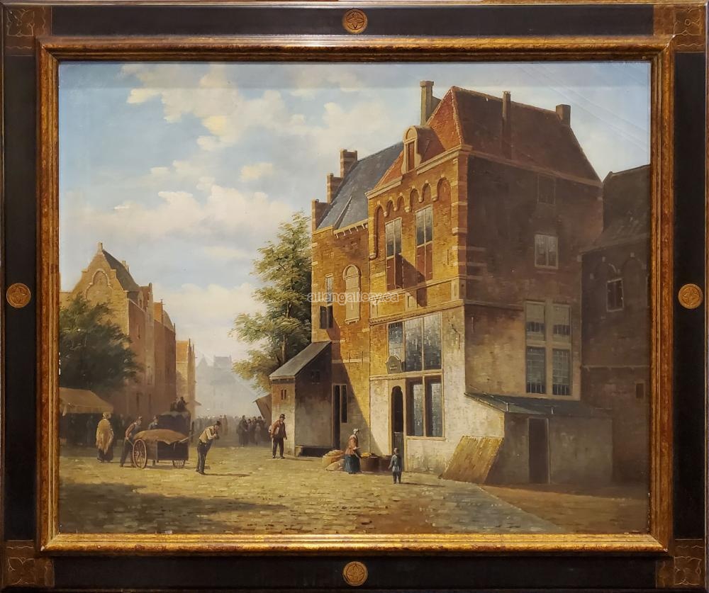 Dutch City Scene - original oil in elegant two-toned frame with carved inlay - available "frame only" on request (24x30 interior size)