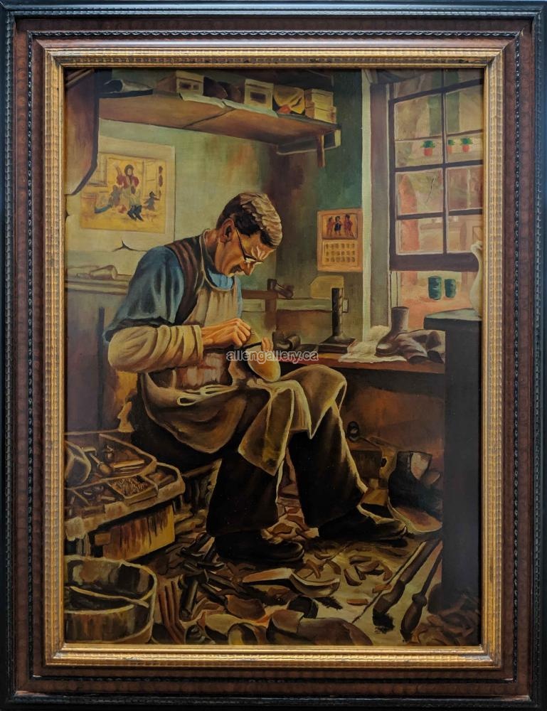 Shoe Maker - original oil in ornate three-tone frame - available "frame only" on request (30x40 interior size)