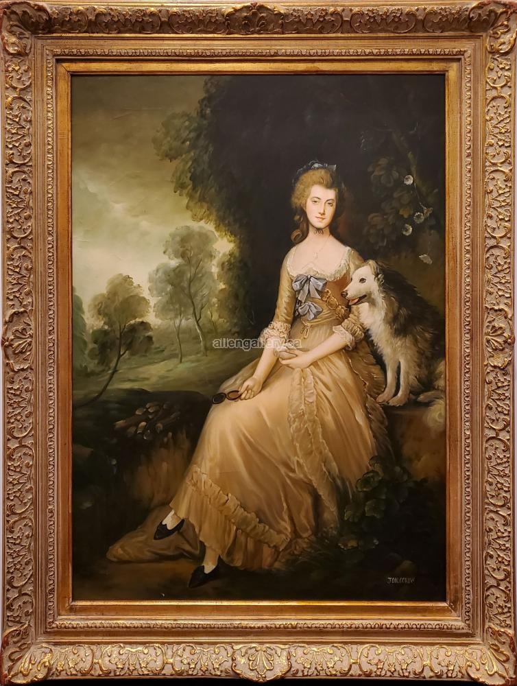 Victorian Woman & Dog - original oil in ornate frame - available "frame only" on request (30x40 interior size)