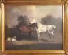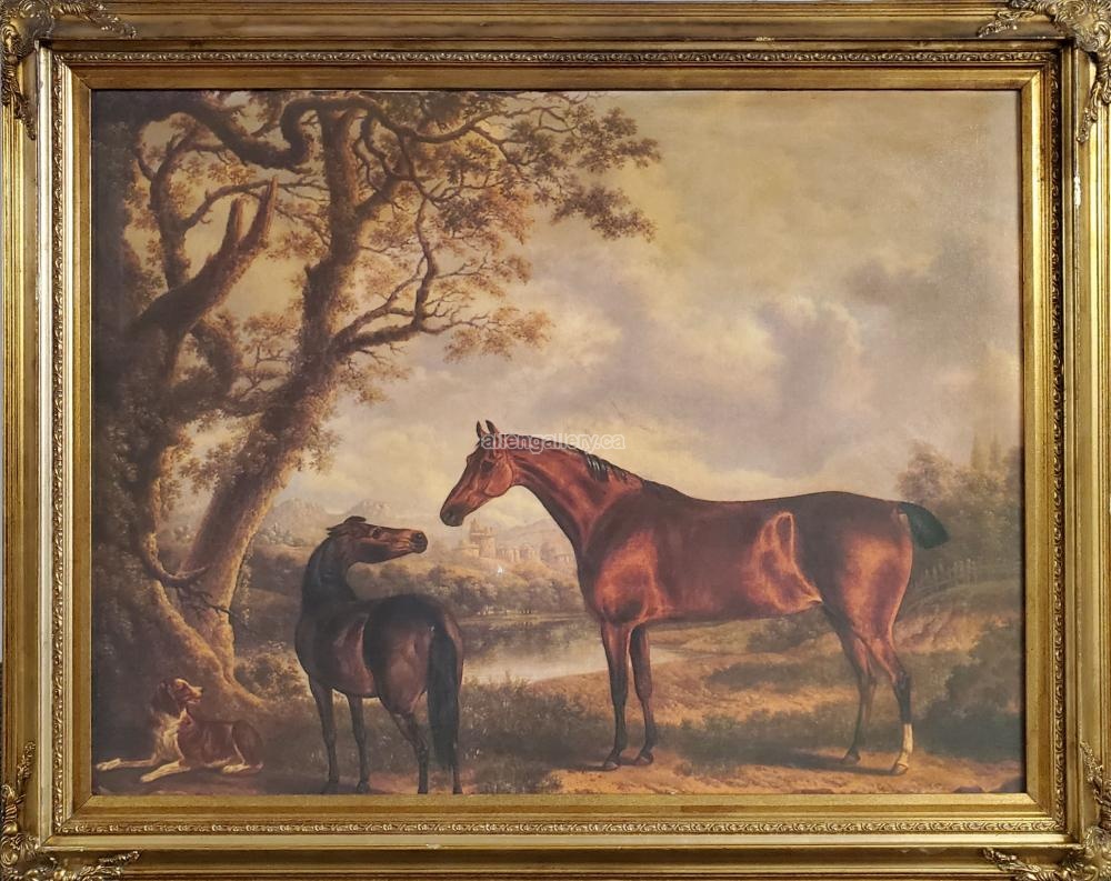 Horse & Pony With Dog In Landscape - canvas giclee in ornate frame with corner ornamentation - Set of 2 - available "frame only" on request (30x40 interior size)