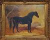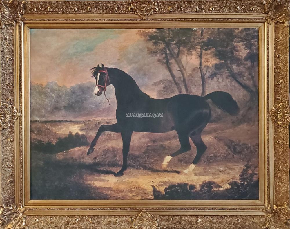 Dark Bay Race Horse In Landscape - canvas giclee in ornate frame with corner & side ornamentation - Set of 2 - available "frame only" on request (30x40 interior size)