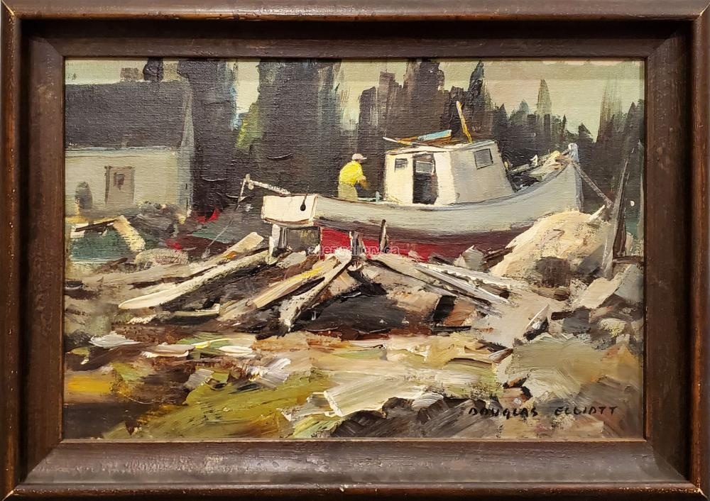 Evening Repairs - original oil in elegant frame - Set of 7