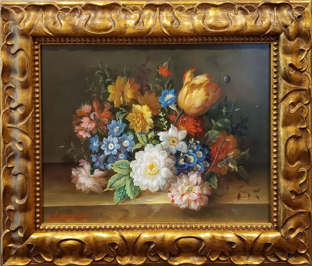 Floral Banquet II - original oil in ornate frame