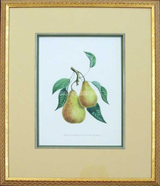 Gros Rousselet D'Aout Pears c.1858 - double matted chromolithograph with grey fillet in patterned frame - Set of 2