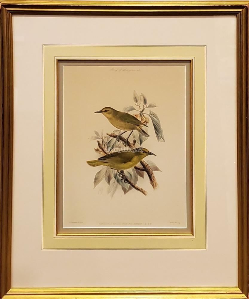 Birds, Viridonia Sagittirostris c.1880 - double matted engraving with hand-embellished mat & gold fillet in elegant frame - Set of 2