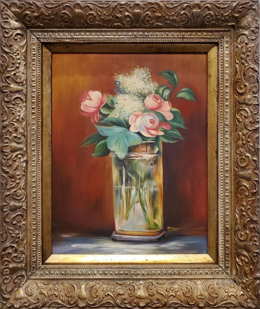 Flowers in a Crystal Vase II - original oil in ornate frame - Set of 2