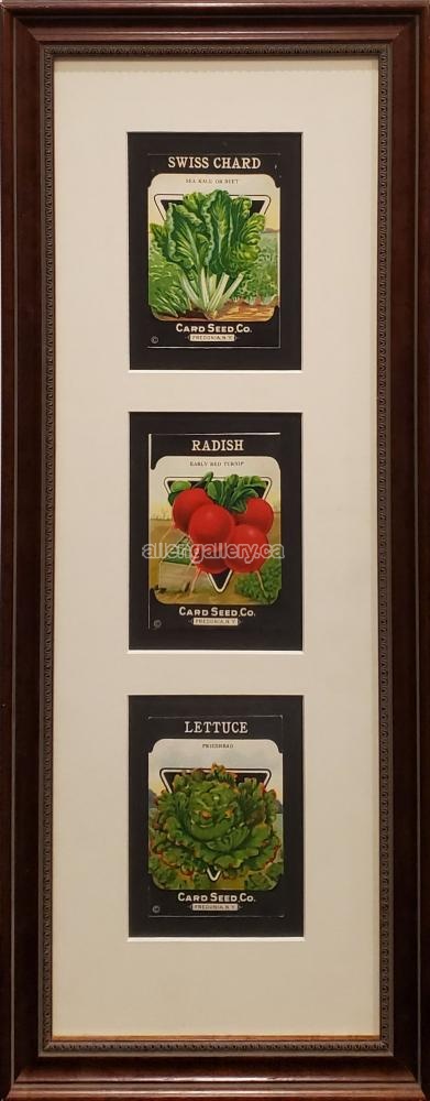 Seed Packages IV (Swiss Chard, Radish, Lettuce) c.1900 - matted chromolithographs with triple window mat in elegant frame with ornamented lip - Set of 11