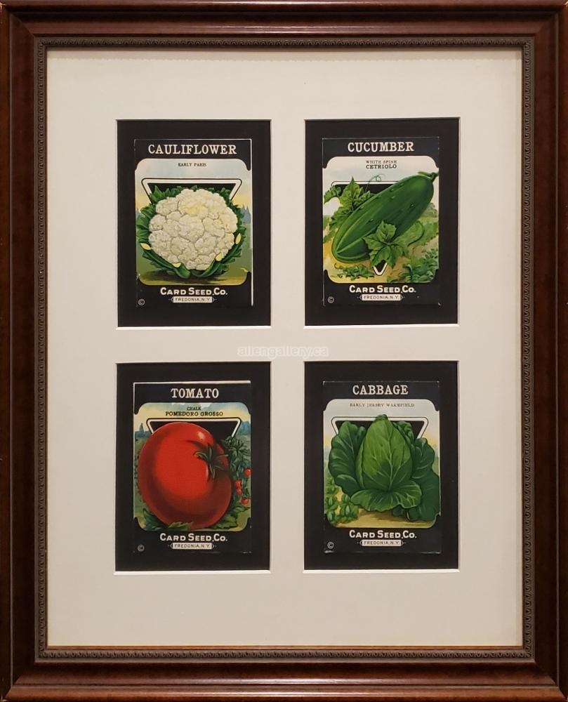 Seed Packages VII (Cauliflower, Cucumber, Tomato, Cabbage) c.1900 - matted chromolithographs with quadruple window mat in elegant frame with ornamented lip - Set of 11