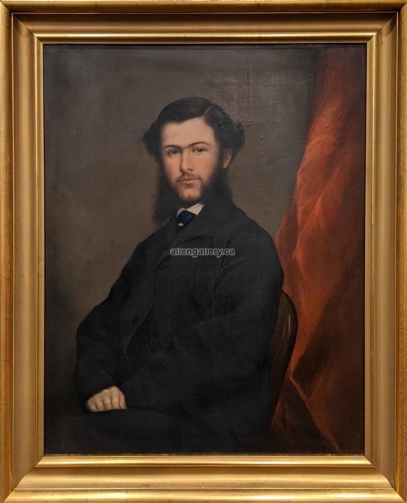 Young Gentleman Beside Red Drapery c.1880 - original oil in elegant frame - Set of 2