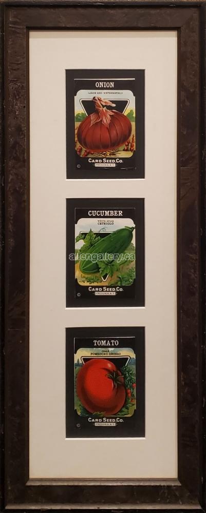 Seed Packages X (Onion, Cucumber, Tomato) c.1900 - matted chromolithographs with triple window mat in rustic frame - Set of 11