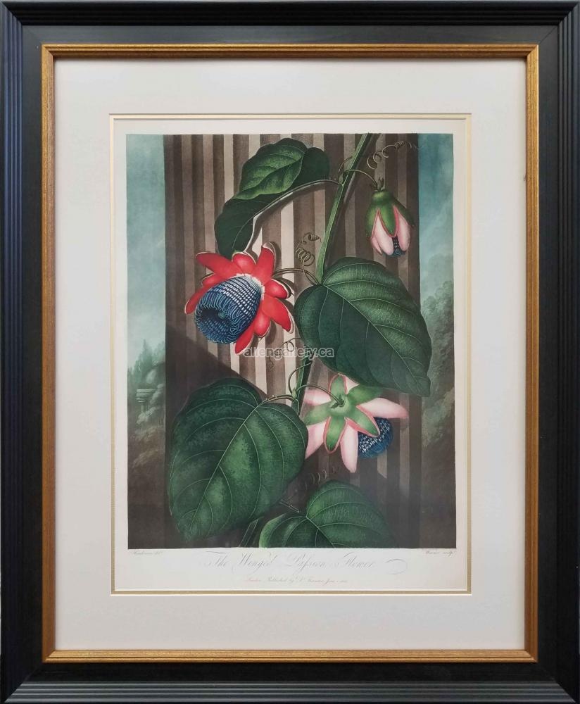 Temple Of Flora, Winged Passion Flower c.1807 - double matted coloured engraving in elegant two-tone frame - Set of 4