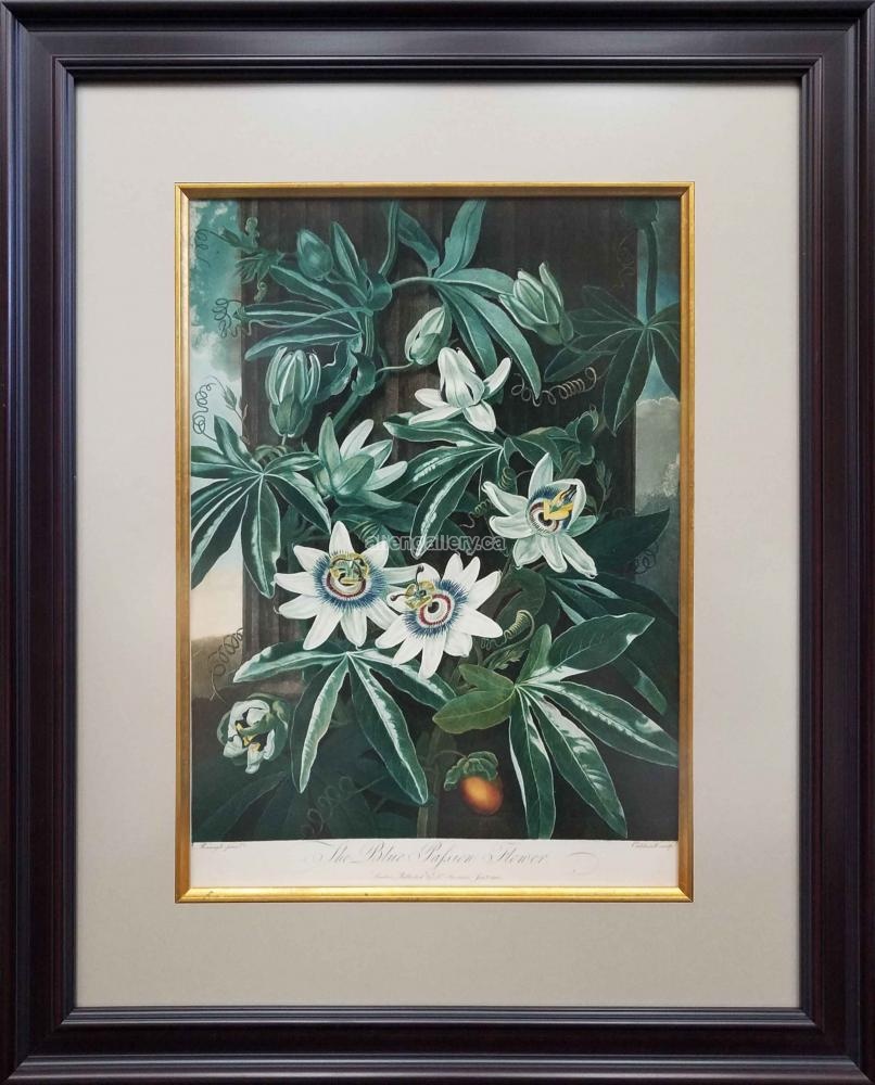 Temple of Flora, Blue Passion Flower c.1807 - matted coloured engraving with gold fillet in elegant frame - Set of 5