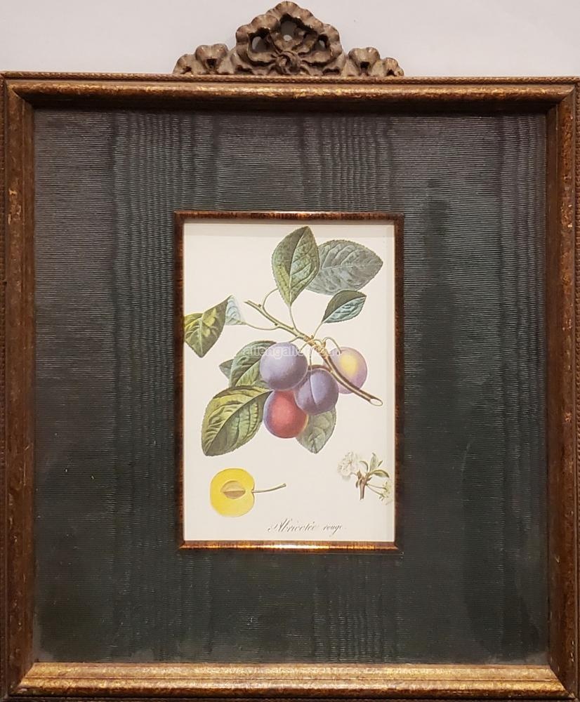 Abricotee Rouge - watercolour print in elegant frame with silk liner & top ornament - Set of 4