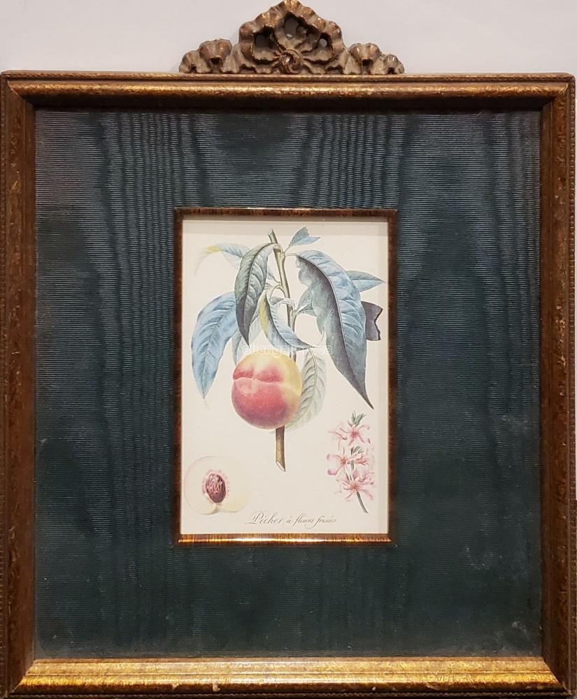Pecher a Fleurs Frisees - watercolour print in elegant frame with silk liner & top ornament - Set of 4