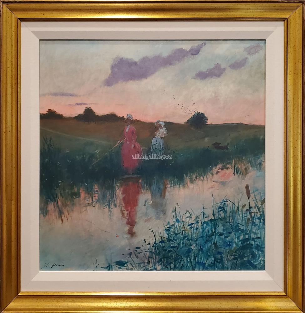 The Artist's Wife Fishing c.1896 - canvas giclee in elegant frame with linen liner - Set of 3