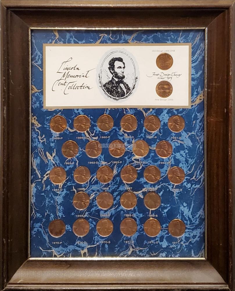 Lincoln Memorial Cent Collection - coins & print in distressed two-tone frame - Set of 7