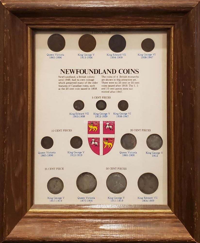Newfoundland Coins - coins & print in distressed two-tone frame - Set of 7