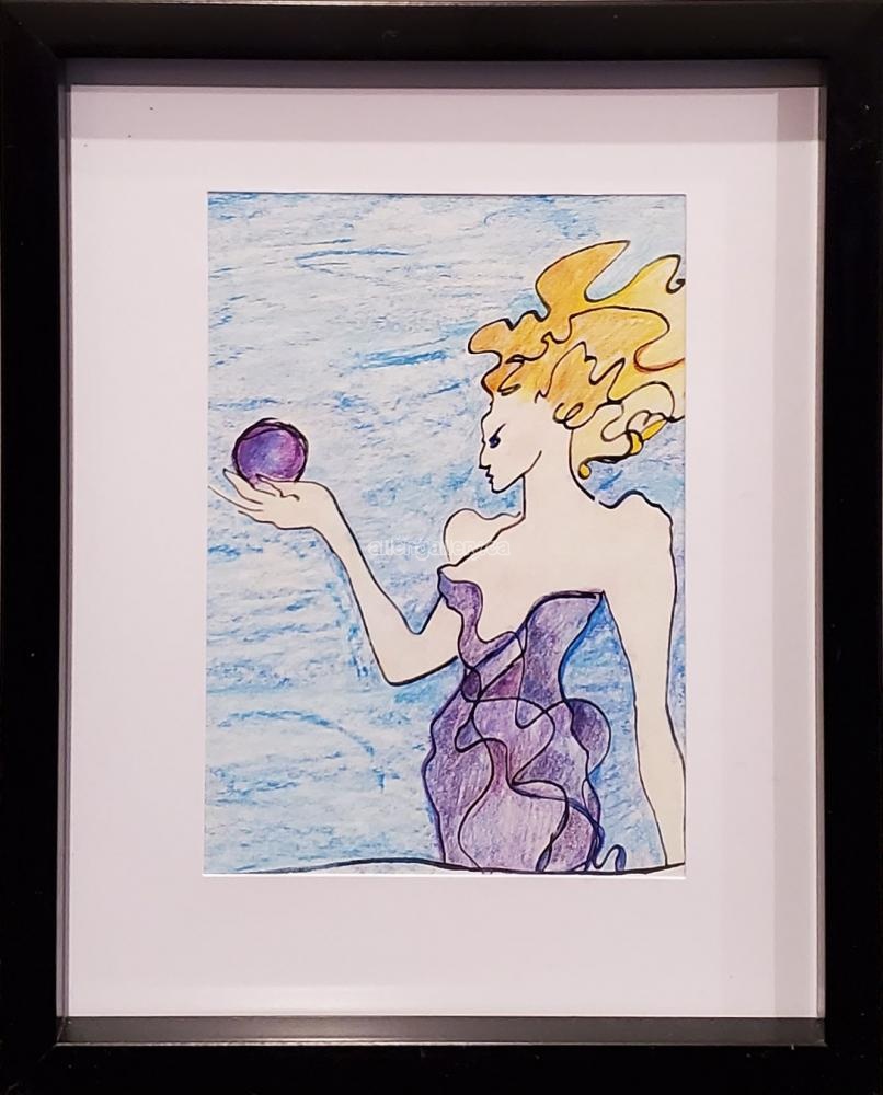 Gazing Orb - matted original drawing in easel back frame - Set of 4