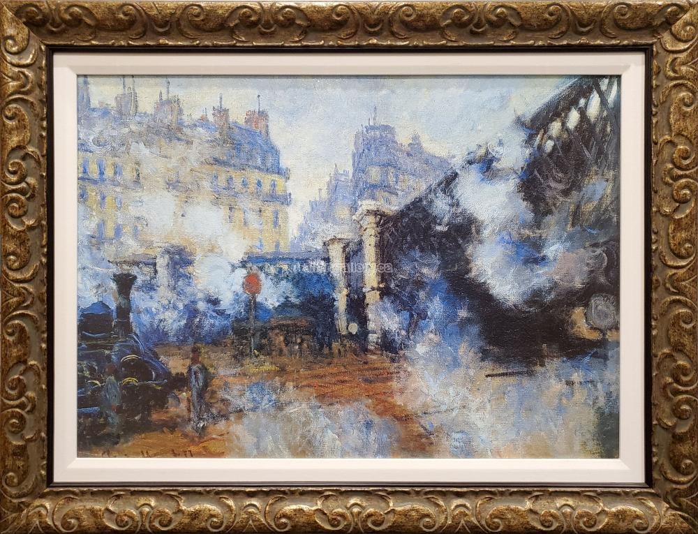 Le Pont de l'Europe, Gare Saint-Lazare c.1877 - embellished giclee in ornate frame with linen liner - Set of 3