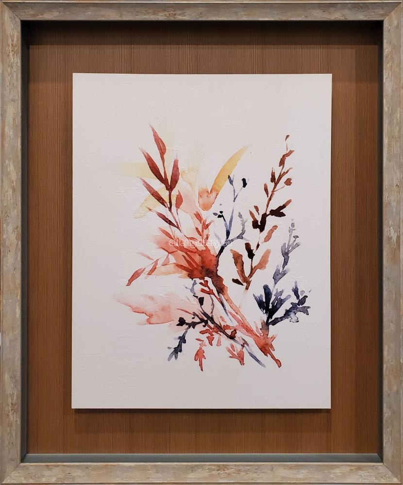 Floral Watercolour I - textured giclee on board in shadowbox - Set of 2