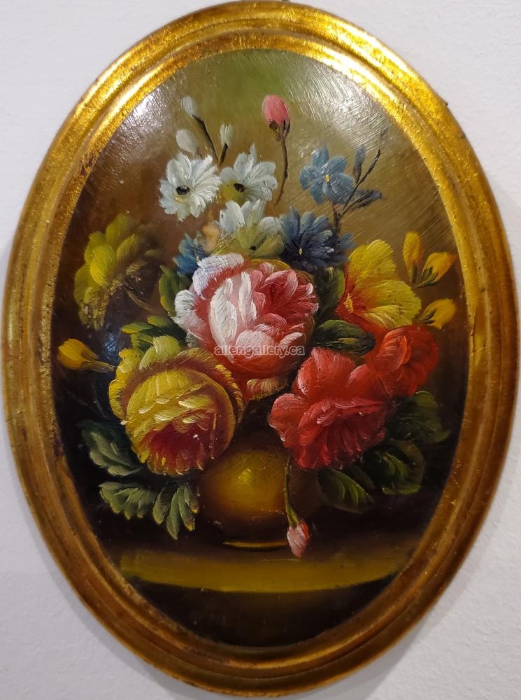Oval Bouquet I - original oil on oval medallion - Set of 2