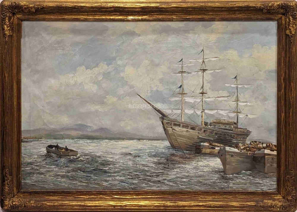 Anchor Watch - original oil in an antique, hand-carved, gilded, gold frame with corner ornaments