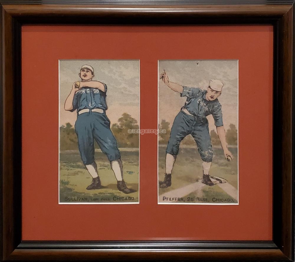 Chicago Baseball Cards II - matted vintage baseball cards in double window mat in elegant two-tone frame - Set of 5