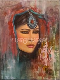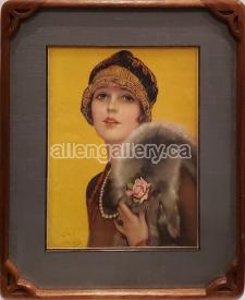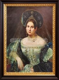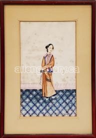 Victorian Girl in Costume - original illustration matted under glass in elegant frame with ornate lip