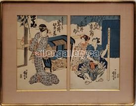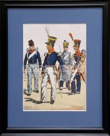 Marine Officers & Infantry c.1827 - hand-coloured engraving in elegant frame - Set of 2