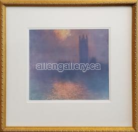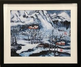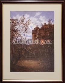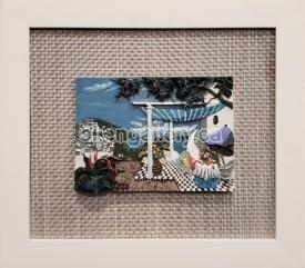 Maison Bleue Along the Side Street - double matted with hand embellished outer mat