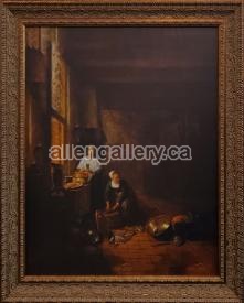 Anchor Watch - original oil in an antique, hand-carved, gilded, gold frame with corner ornaments