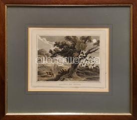Catching the Badger c. 1813 - hand-coloured aquatint etching with hand-lined mat