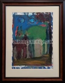 Framed LP - Single - hand painted cover jacket, double matted on a green backdrop, in a distressed black frame